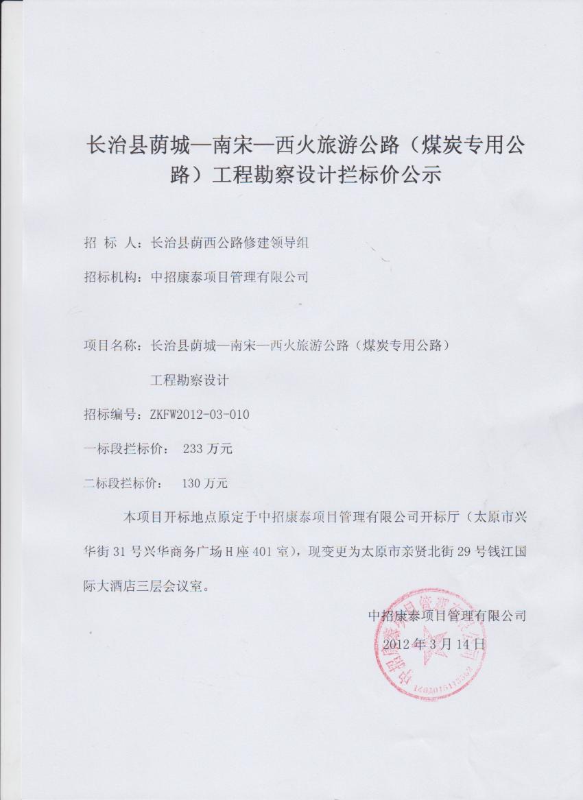 攔標(biāo)價公示
