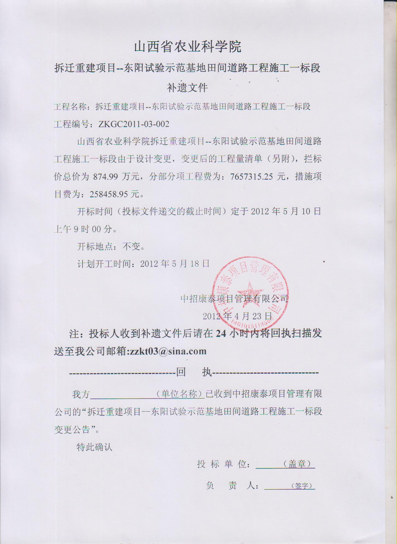 山西省農(nóng)業(yè)科學(xué)院拆遷重建項目--東陽試驗示范基地田間道路工程施工一標(biāo)段補(bǔ)遺文件