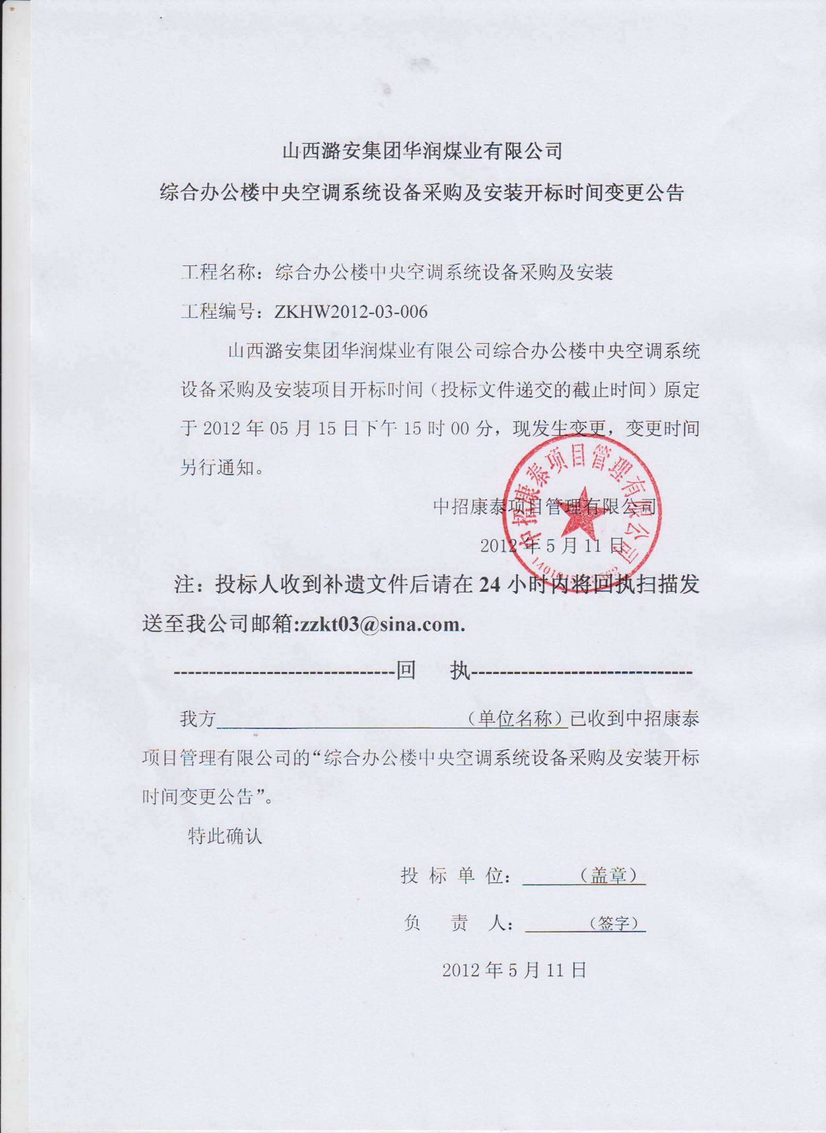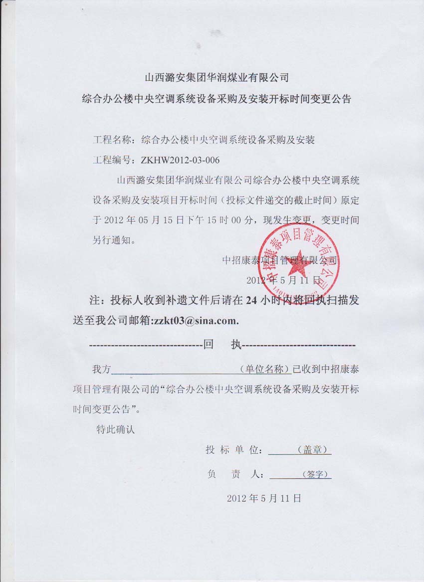 山西潞安集團(tuán)華潤(rùn)煤業(yè)有限公司綜合辦公樓中央空調(diào)系統(tǒng)設(shè)備采購(gòu)及安裝