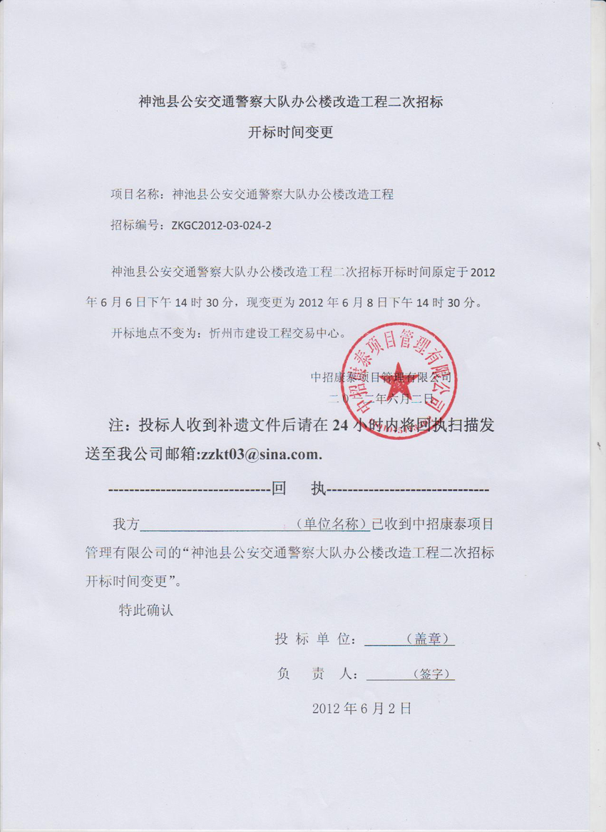 神池縣公安交通警察大隊辦公樓改造工程二次招標(biāo)開標(biāo)時間變更