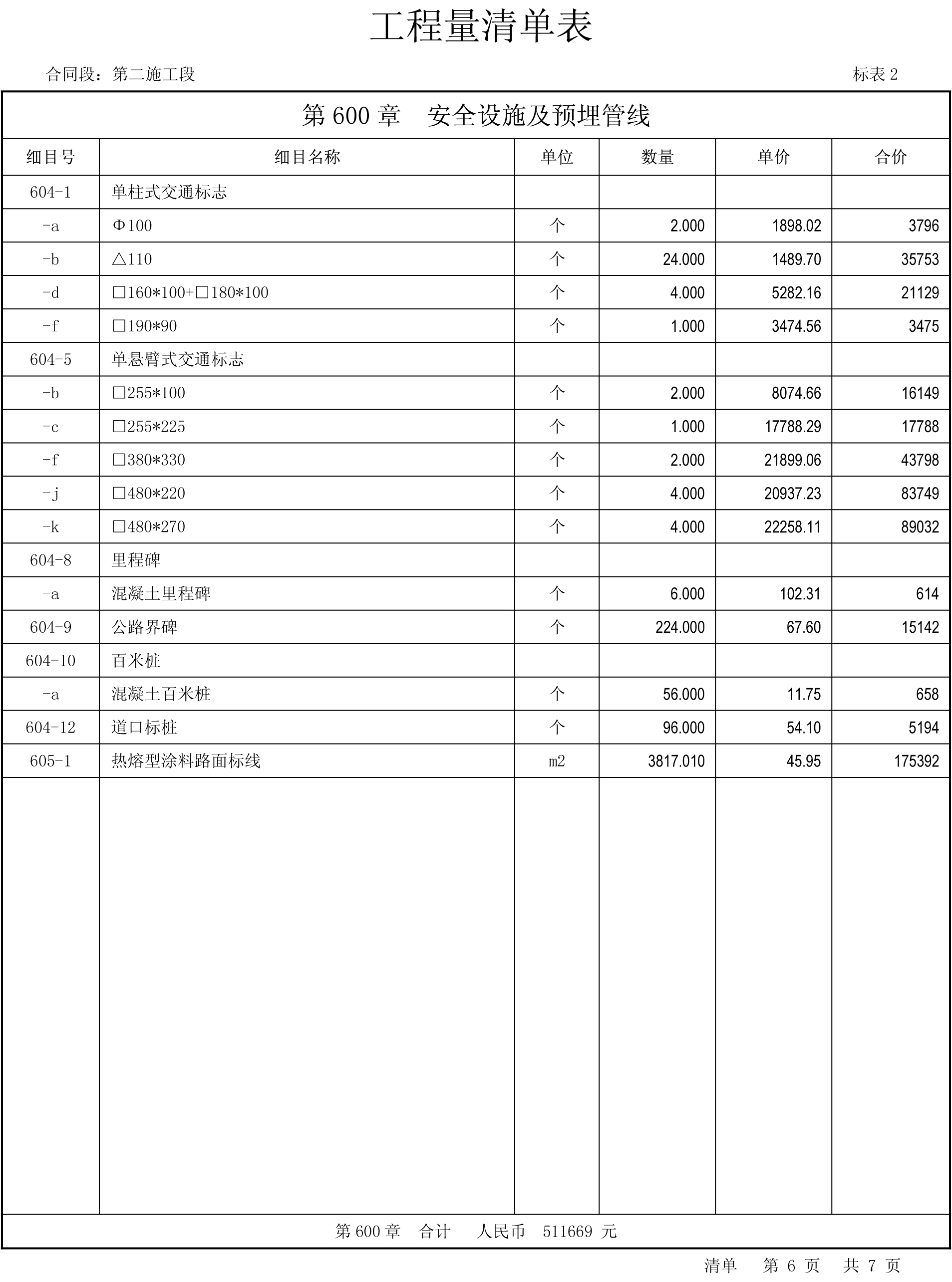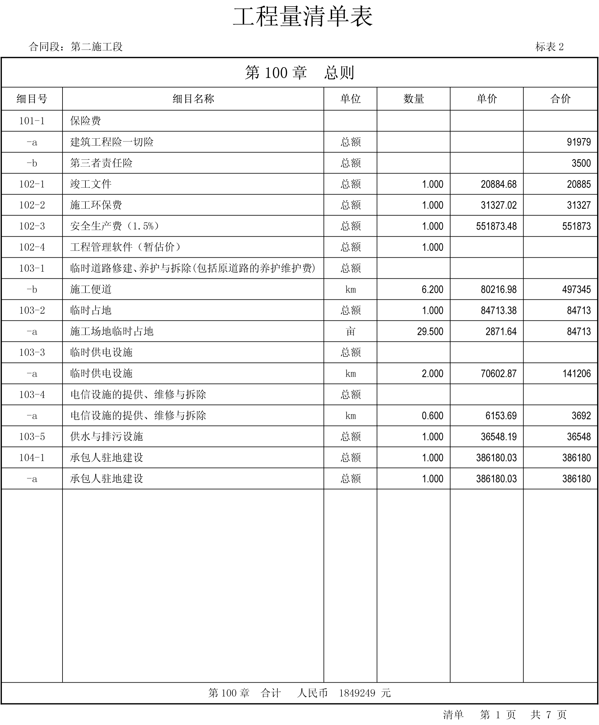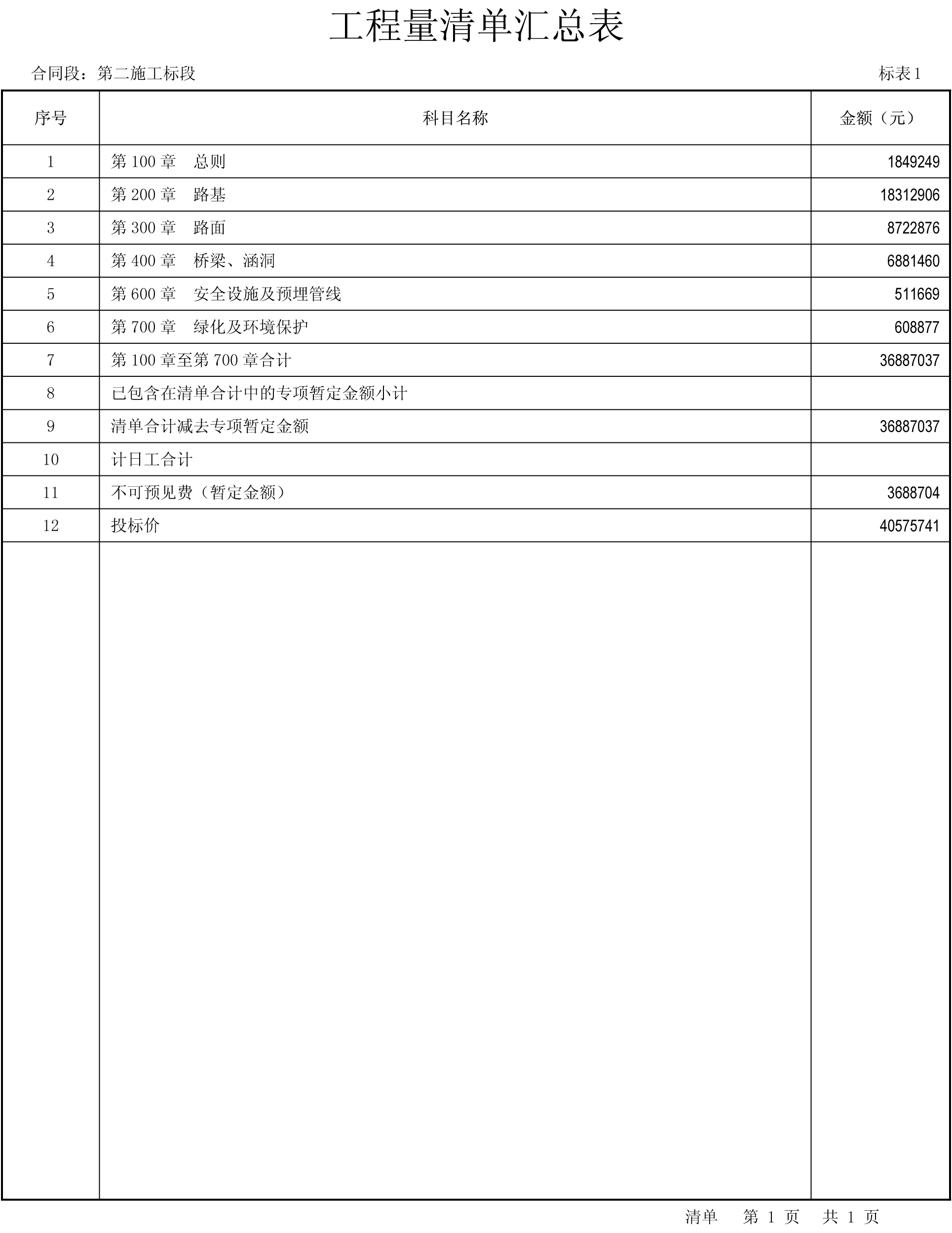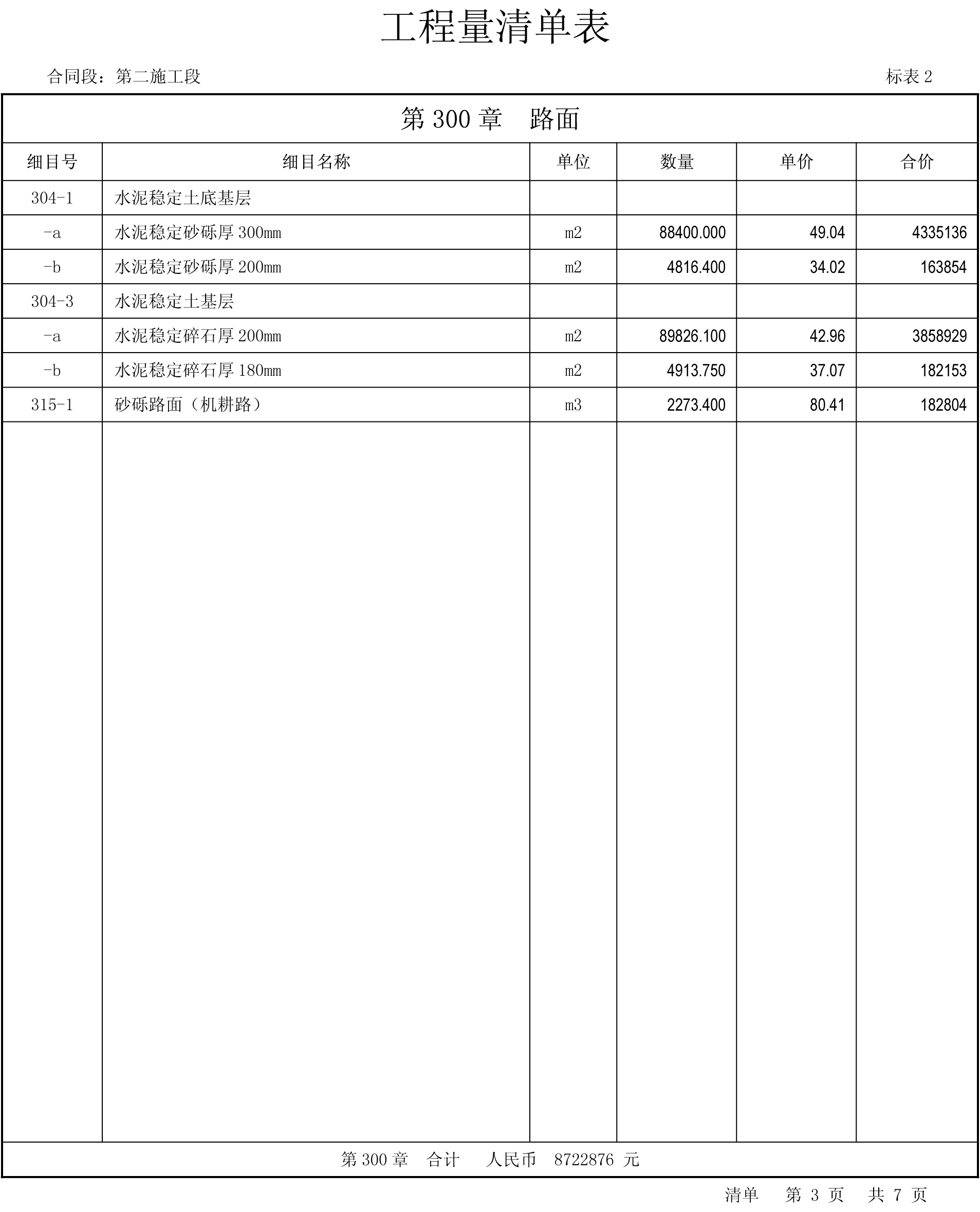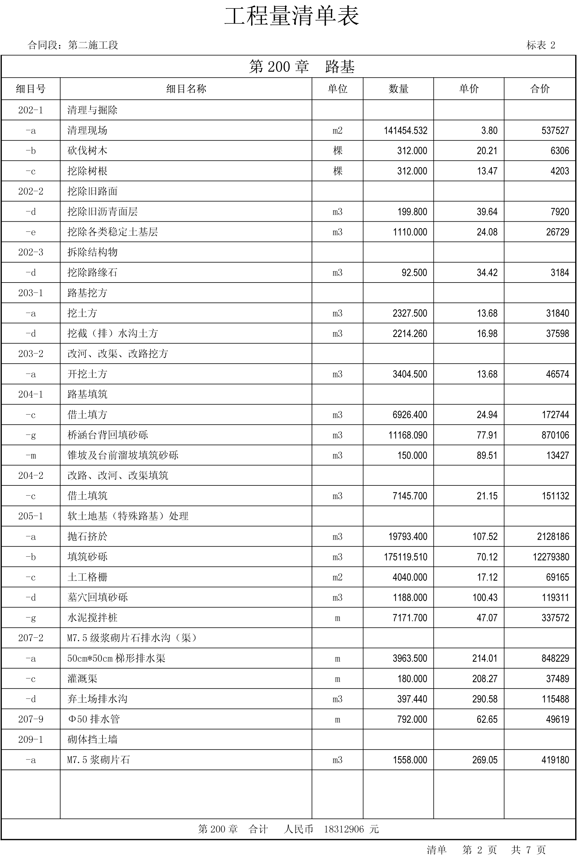 國道108線忻州市過境改線泡池-盧家窯段、盧家窯-富村段工程施工二標(biāo)段工程量清單